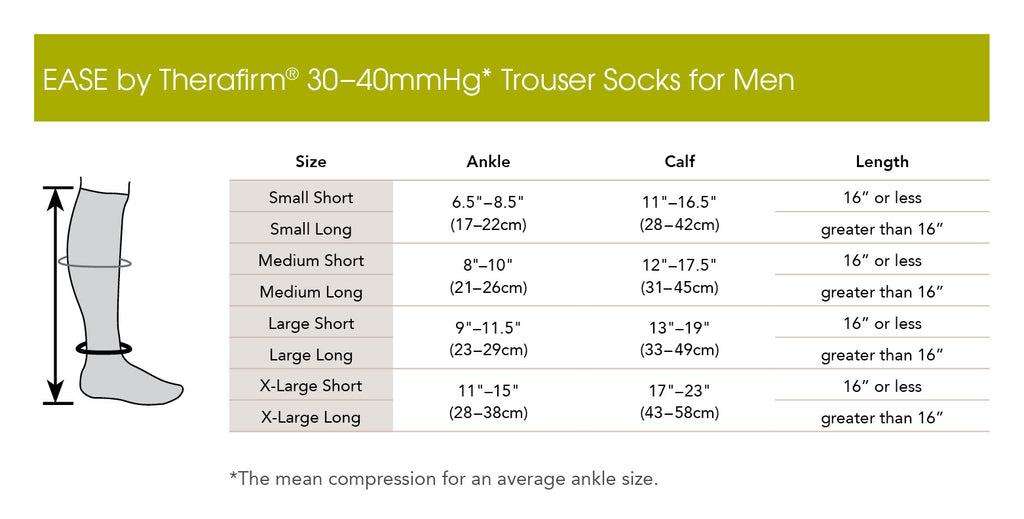 *Sizing for graduated compression socks, stockings & armsleeves differs significantly from typical sizing, and is based on precise measurements. Each brand also varies. To ensure you are ordering the correct size for you, please refer to the size chart for this specific product before making your selection.