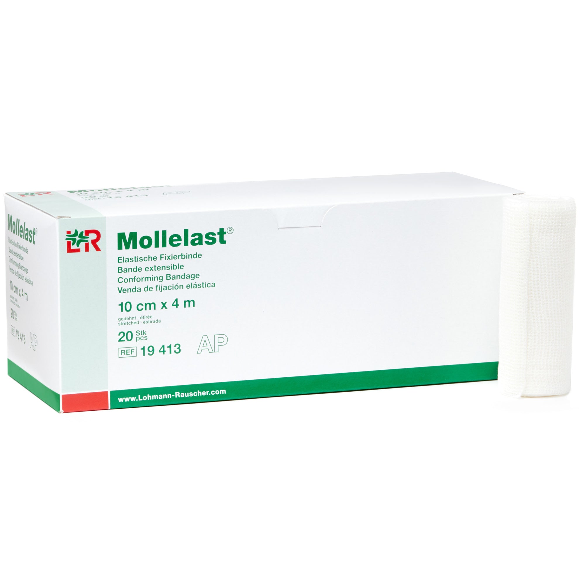 Hand applying white bandage to another hand on a light gray background Foot with a bunion corrector on a plain background Mollelast bandage packaging on a white background Mollelast bandage packaging on a white background Mollelast bandage packaging on a white background Box of Mollelast bandage on a white background Mollelast elastic bandage packaging on a white background